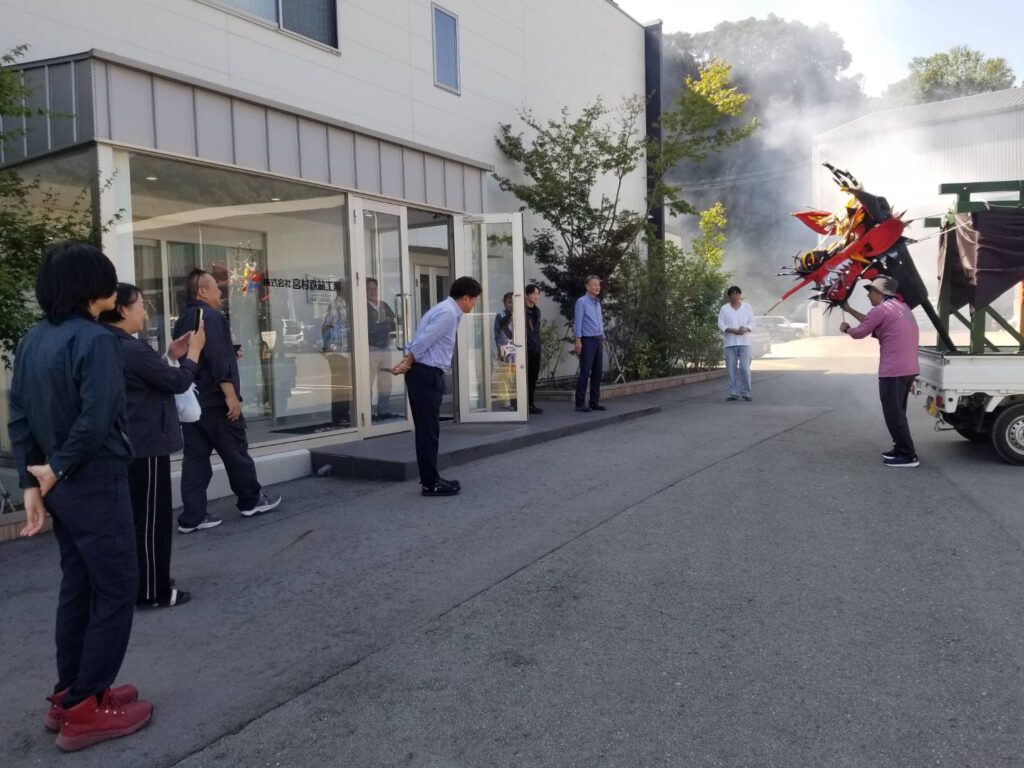 お知らせ 2025南関ぎおんさん 投稿日:2025年8月27日 8/2、南関町の南関ぎおんさんが開催され、ミニ大蛇がきました! / この日は、事務所もみんないて、みんなで見学しました。 / 事務所をお祓いしてもらい、そのあとは工場をお祓いしてもらいました。 / 今年も暑い中ありがとうございました。 /