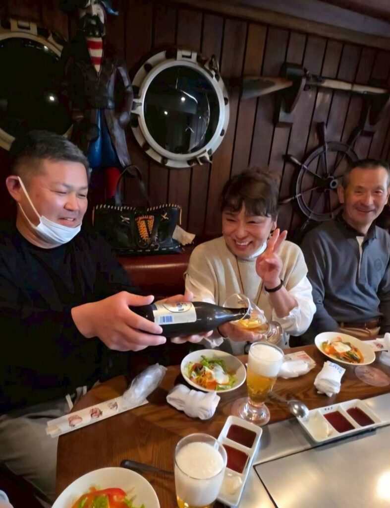 津田さん、部長にお酌してもらって嬉しそうw