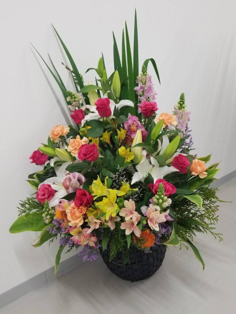 入社式を華やかにしてくれたアレンジメントは南関町の風音さんにお世話になりました。